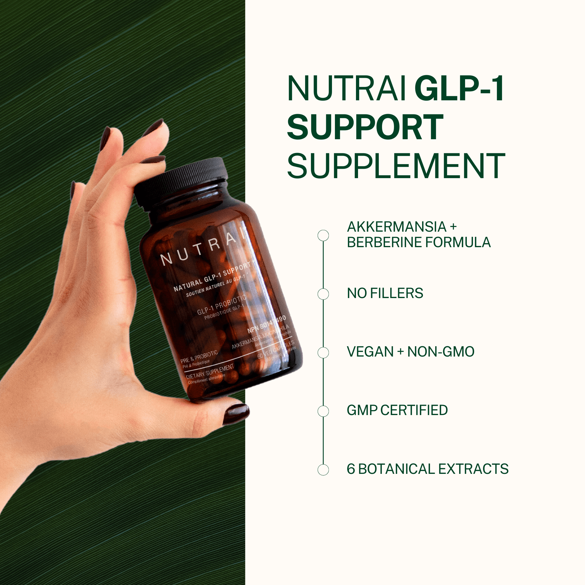 Yes. Nutrai Natural GLP-1 Support is 100% vegan, Non-GMO, and free from artificial additives or fillers.